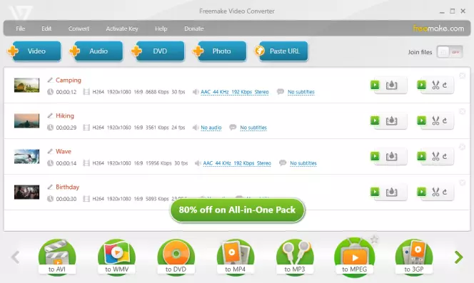 - Incluye MP4, MKV, FLV, AVI, WMV, entre otros para vídeo.